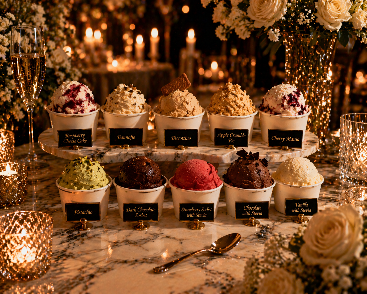 The Ring for Gelato Experience is a unique dessert station that combines luxury, fun, and instant service. Guests simply press the ring… and within seconds, they receive freshly served gelato.
